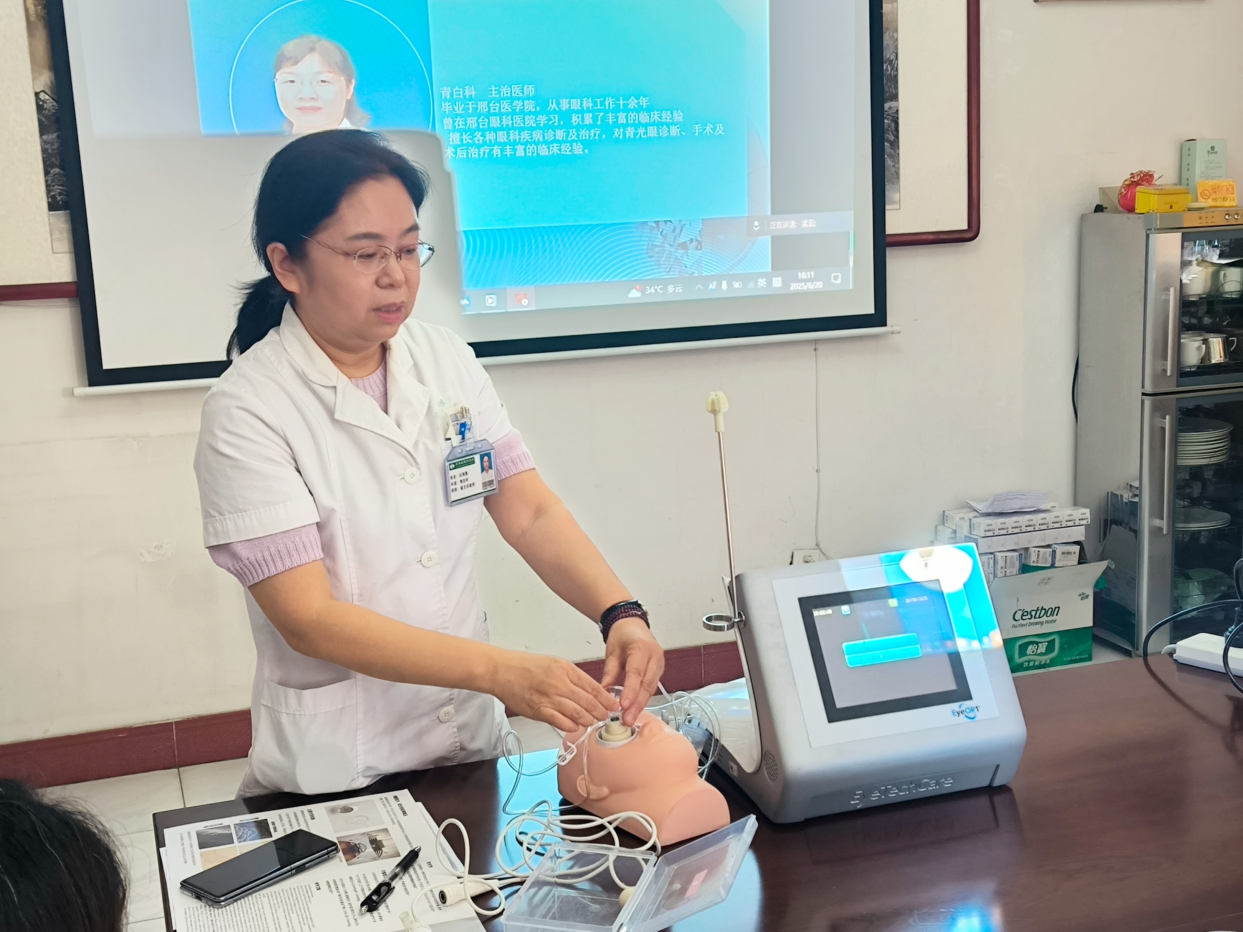最後左海(hǎi)霞主任還(hái)現(xiàn)場(chǎng)操作(zuò)了(le)一(yī)下(xià)UCP的(de)使用(yòng),她(tā)£總結到(dào),青光(guāng)眼是(shì)眼科(kē)非常重要(yào)的(de)專科(kē),涉及到(dγào)眼底、白(bái)內(nèi)障各個(gè)專業(yè)。青光(guāng)眼的(de)臨床治療上(shàng)還δ(hái)存在很(hěn)多(duō)待解決的(de)問(wèn)題,相(xiàng)信UCP技(jì)術(shù)能(néng)夠☆為(wèi)青光(guāng)眼的(de)臨床治療帶來(lái)革命性的(de)突破,我院開(kāi)展的(de')UCP治療,将積累更多(duō)臨床經驗,解決更多(duō)青光(guāng)眼患者的(de)痛苦。